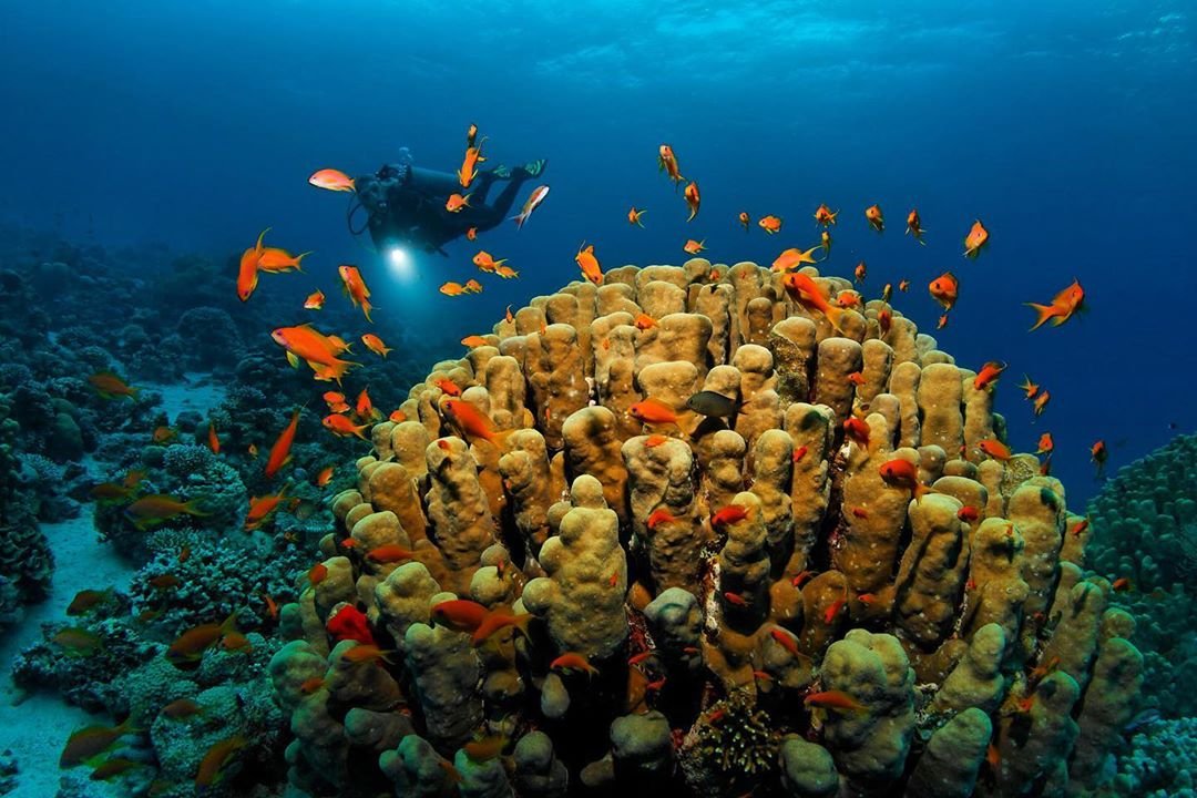 The Gulf of Aqaba is famous for its marine wildlife. It is the north-eastern arm of the Red Sea, measuring a length of 180km and expanding to a width of 25km, with a shoreline shared by Egypt, Saudi Arabia, Israel, and Jordan. The Gulf of Aqaba has the world’s northernmost coral reef ecosystem. An average water temperature of °23 Celsius, the absence of stormy weather, and mild water currents have created a hospitable environment for the growth of corals. Favorable salinity levels are perfect for the myriads of other marine life-forms. As a result, it is home to 110 species of soft corals and 120 species of hard corals. The reefs that fringe the Gulf host over 1,000 species of fish, corals, crustaceans, and mammals living in its waters. Nocturnal animals such as the crab, shrimp, and lobster appear in search of food in the dark hours of the night. Seasonal visitors to the Gulf of Aqaba include sea turtles, dolphins, sea cows, and harmless whale sharks.